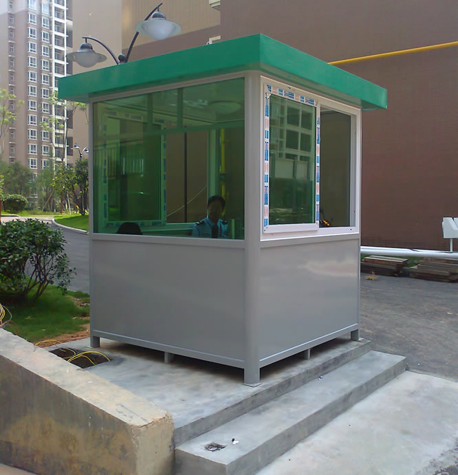 保安崗亭是一種保護,常見于廣場、社區、公司、工廠門口、展廳門口等。,用于保護公安人員免受風雨侵襲。  保安崗亭有遮陽.擋雨.實用.美的作用。  保安崗亭的原則與房屋有關。一般的保安